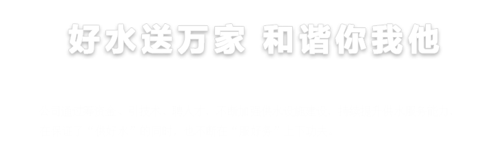 公司作為公益類供水企業(yè),推進(jìn)國(guó)企改革的責(zé)任落實(shí),多措并舉提升改革成效,增強(qiáng)國(guó)有經(jīng)濟(jì)的競(jìng)爭(zhēng)力和抗風(fēng)險(xiǎn)能力。公司以“保障城市優(yōu)質(zhì)供水?;保證供水誠(chéng)信服務(wù)為人民?”為宗旨,以“安全供水、供安全水”為服務(wù)民生理念。